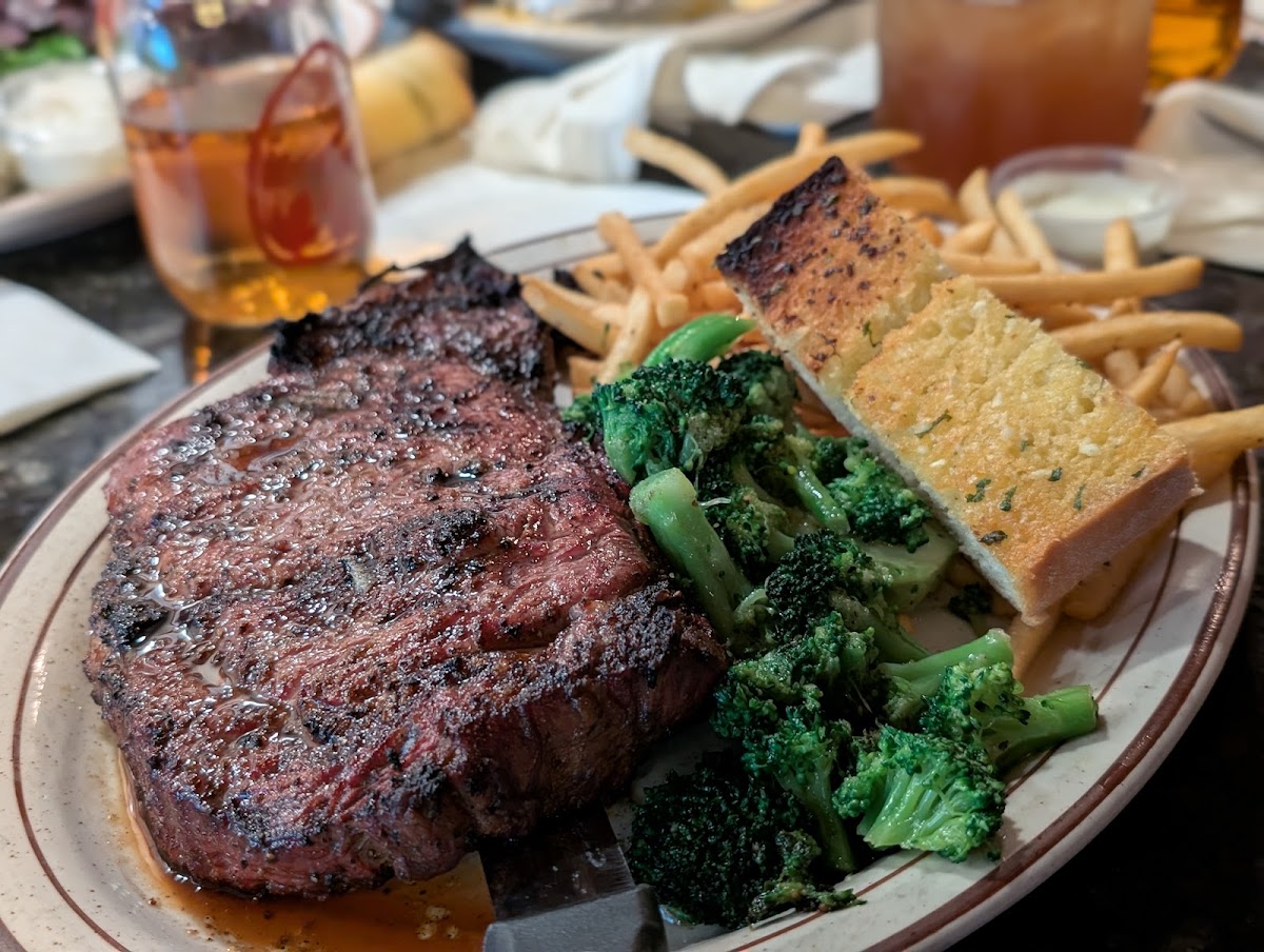 Popular Dishes: Among the standout items on the menu, the sixteen-ounce ribeye is frequently praised, with customers like Michael Powell declaring it the best they've ever tasted. Savory accompaniments such as Garlic Red Wine Sautéed Mushrooms and Blue Cheese Crumbles Baked provide the perfect balance to your meal, while the Basket of Garlic Bread is an irresistible starter that pairs beautifully with a drink from the beer selection. Don't forget to save room for dessert—signature offerings like Chocolate Lava Cake and Caramel Apple Pie promise a sweet ending to your dining experience.